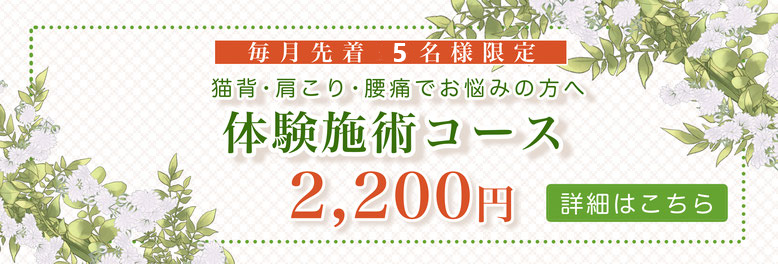 | HPを見た方限定!!初めての方、相談、姿勢チェック体験を希望の方, | ||